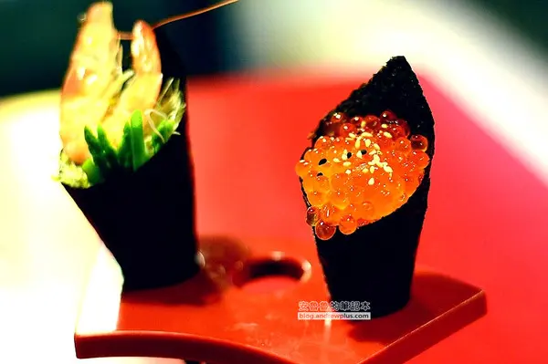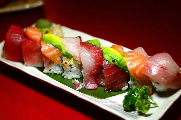 由鮭魚、鮪魚、鯛魚以及酪梨組合而成,魚肉包裹起來的捲壽司吃起來不會像握壽司那麼生冷,再加上裡面包裹了酪梨,整體的口感滿溫潤的,不太敢吃太多生魚片的朋友,應該也能大口大口吃!