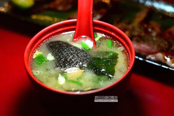 ▼帶皮的鮭魚肉有Q彈的膠原蛋白和扎實的鮭魚肉,搭配湯一起喝口感頗好,味增湯是附在套餐裡面的,喝完了還可以請老闆娘續唷!
