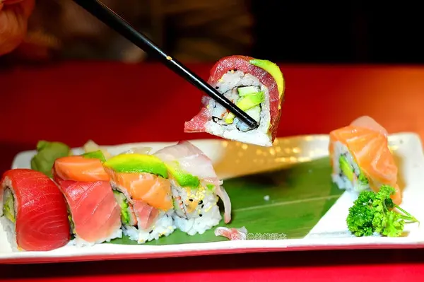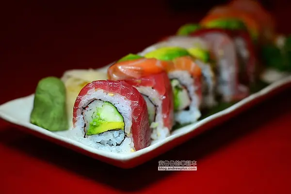 ▼不過彩虹捲可能會讓喜歡吃握壽司或生魚片的朋友覺得不夠過癮,由於米飯比較多,再加上有酪梨綿密的口感讓魚肉的香甜味變得比較不明顯,此外使用的是醋飯,所以吃起來會帶一點酸味!