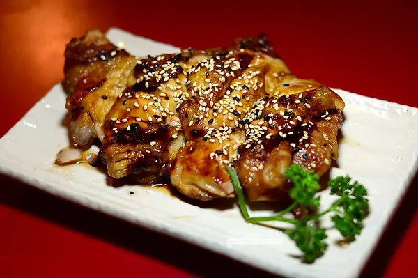 整塊去骨雞腿排,完整保留肉汁和軟嫩的肉質,撒上黑白芝麻增加口感和香氣,調味不會過重的照燒醬讓餐點美味度提升