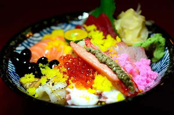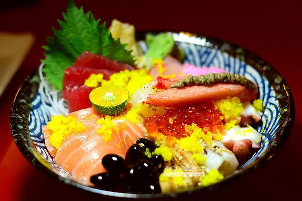 食材相當的豐富,有鮭魚、鮭魚卵、鮪魚、紅甘、干貝、蟳味棒、比目魚鰭邊肉、鰻魚、花枝、章魚和甜滋滋的黑豆,一次能滿足客人多種願望唷!