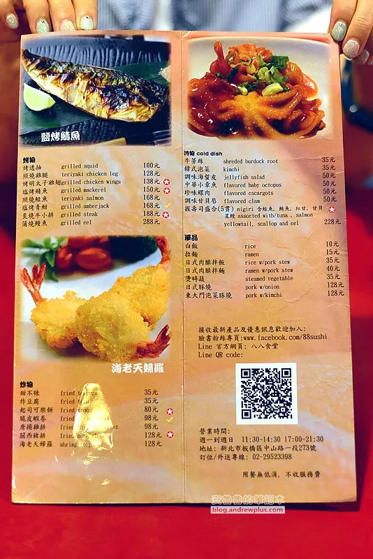 前陣子很流行的加州捲,也出現在板橋了,以後要吃加州捲就不用跑台北了,還有多種新鮮生魚片組成的八八御膳丼,一次可以吃到這麼多種生魚片真是過癮,炸物和烤物也還滿適合下酒的,CP值還算不錯!