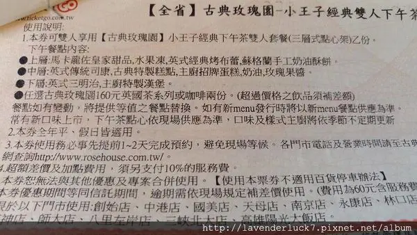 內容是一套小王子經典下午茶雙人餐(menu沒有