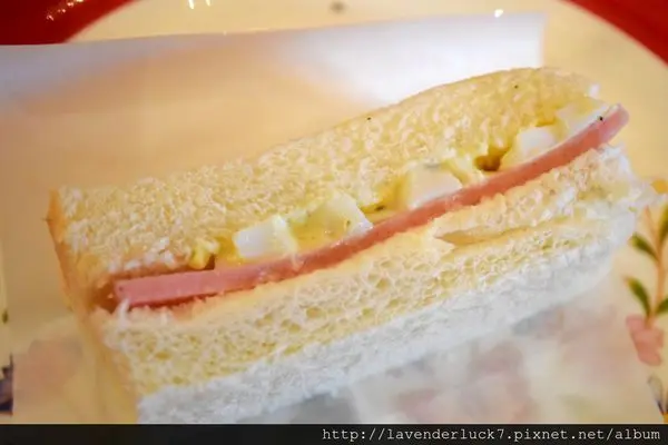 三明治本來就是冷的,裡面是蛋沙拉與火腿,吐司略乾...