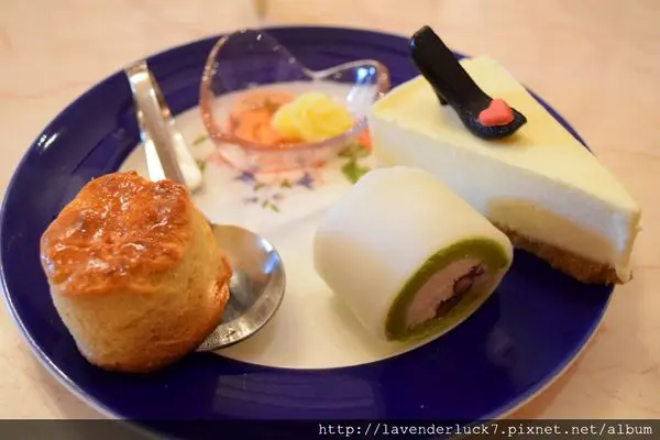 中層是司康+抹茶蛋糕麻糬捲+起士蛋糕