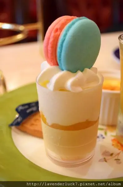 外酥內軟的馬卡龍下是荔枝奶凍