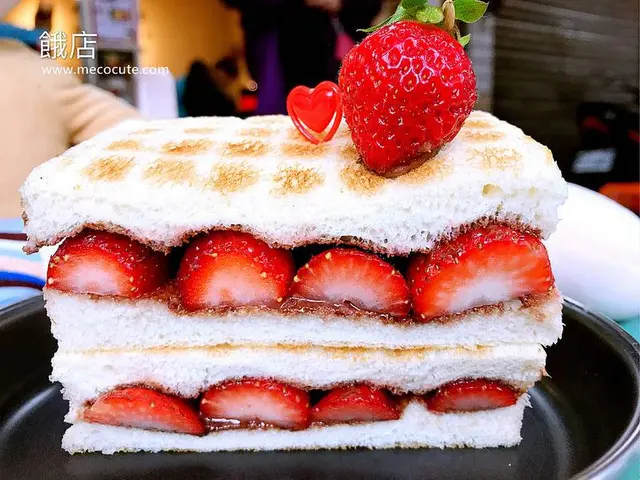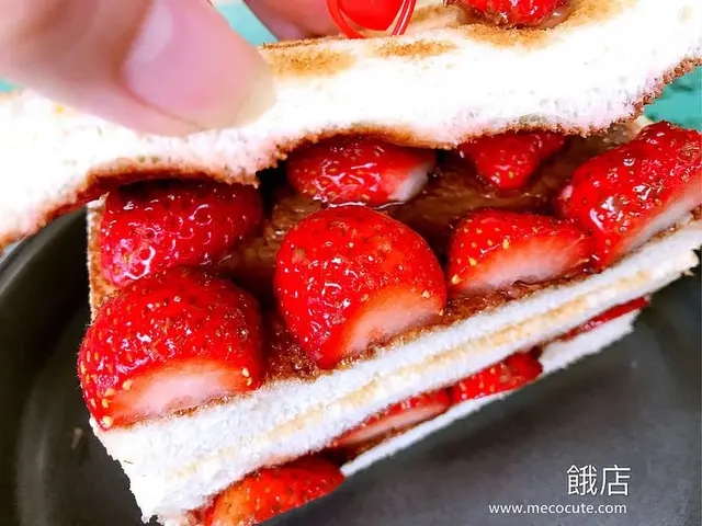 內層擺滿新鮮草莓切片,現點現做需稍等,微酸微甜的草莓與巧克力最合拍,沒想到炭烤吐司也能像草莓巧克力蛋糕一樣有這豐富的層次吧!