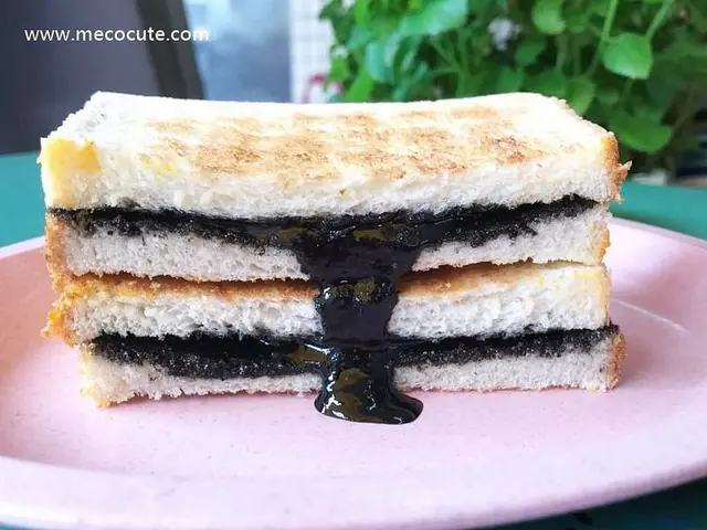 除了起司土石流,餓店創意的將元宵節的芝麻湯圓內餡也做成炭烤吐司口味,(濃郁芝麻炭烤吐司$45)內用還能嘗到這小小黑金土石流的芝麻口味,濃郁的芝麻有著迷人的香氣,真的就是芝麻湯圓的內餡,甜而不膩!這是我最喜歡的口味,愛吃花生的人也可以點芝麻花生炭烤吐司。