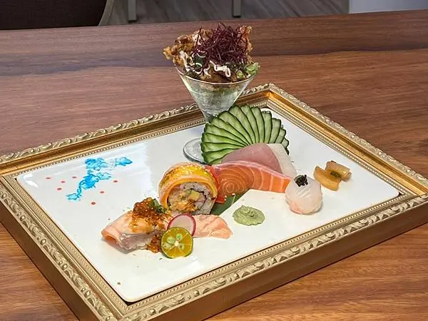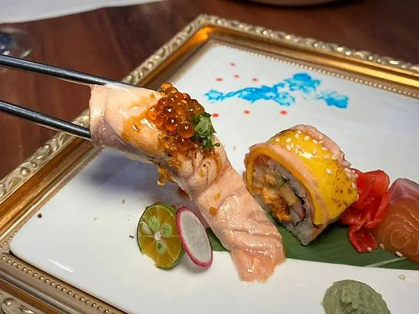 肥美的新鮮生魚片切的比一般厚實,鮮甜的好味道我好喜歡~比較特別是小小一顆圓球狀的壽司,原來是用花枝包裹壽司米,上頭用魚子醬點綴非常可愛又可口~