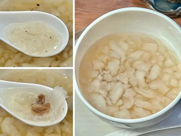 喝起來很微微清甜,燉煮到軟綿細緻的口感,相當細緻滑順好入喉,頭一次吃到這麼好吃的雪蛤甜湯~
