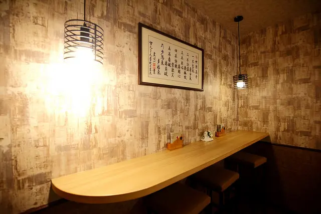 牆上掛了不少中國書法,井然有序潔淨的桌椅擺設