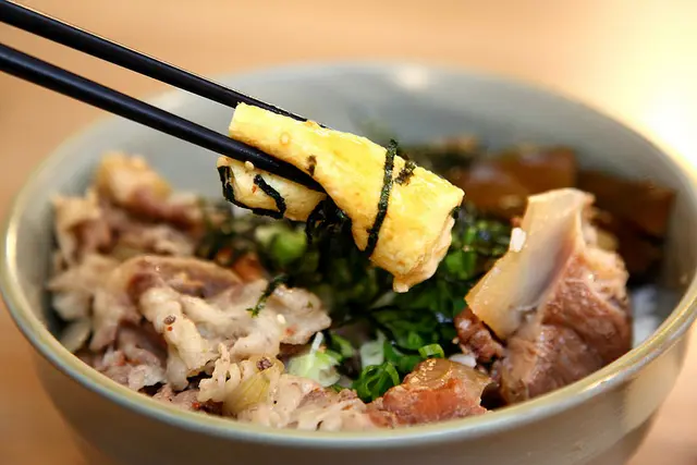 日式作法的金黃嫩蛋也是一絕,好想叫老闆甘脆推出單點蛋好了,多汁軟嫩超好吃!