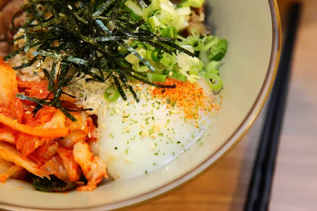 配料也很豐富,超多的牛培根,泡菜,還有一顆溫泉蛋!