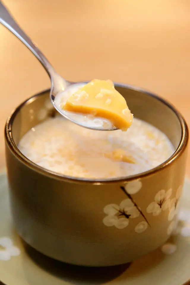 吃起來好像牛奶版的摩摩碴碴!如果您的胃還騰的出空間的話,不妨點麻糬布丁"驚奇"一下吧!