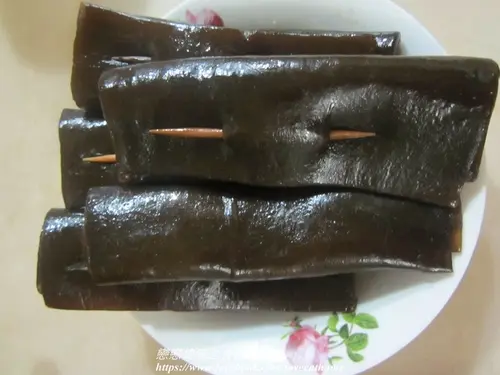 香辣海帶-原價$50元/盒,每包有5條X2包共有10條,小辣,一般海帶很難滷的夠味又爛,需要花很多的時間,這海帶滷得很爛又夠味,甜甜的滋味,深受我個人喜愛。