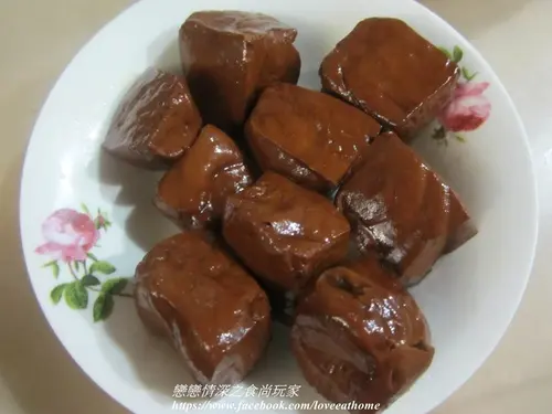 香辣豆干300g-原價$60元/盒,小辣,男生吃一粒一口剛剛好,吃起來很方便,外面有些豆干會滷得都破了,失去風味,但這家卻每粒都滷的剛剛好,吃起來甜甜,有些八角的香氣,非常順口。
