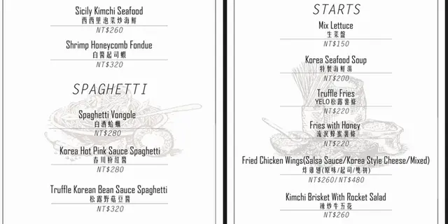 YELO Seoul Bistro首爾餐酒館的菜單(最後更新日2019.05)