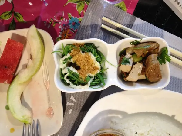 因為還有人沒吃午餐所以點了火鍋和雞腿飯