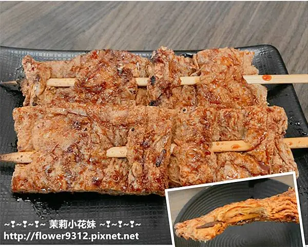 上面是佐上店家特調的燒烤醬,吃起來鹹鹹甜甜的,讓人不小心一口接一口的吃完