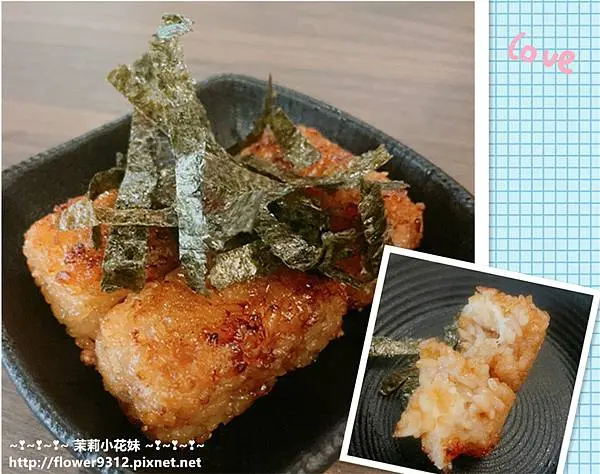 這烤飯糰超可愛的,小小一顆,一盤有3小顆,上面灑上海苔