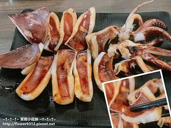 可以看到這魷魚是多汁的,吃起來很鮮甜,而且這魷魚肉質很Q彈好吃,這搭配啤酒超合的~