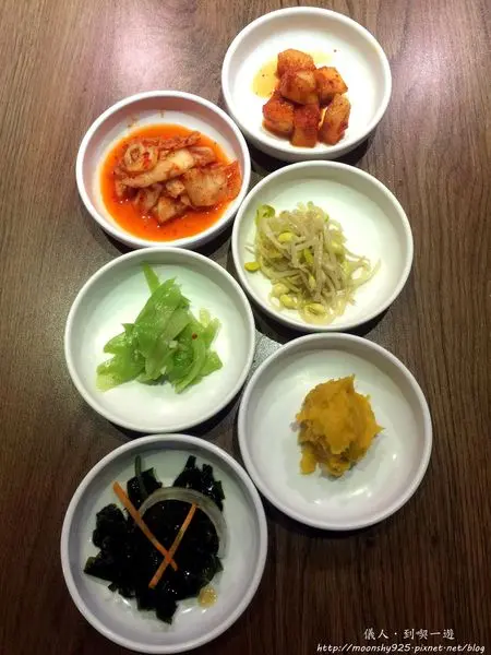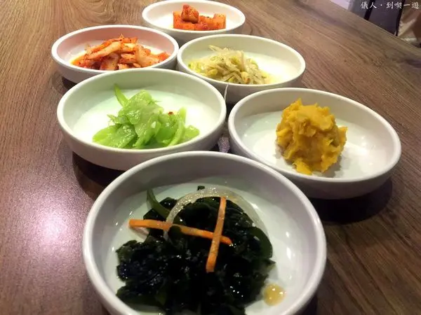 一桌均附六樣小菜,有海帶、南瓜泥、泡菜.....等,
