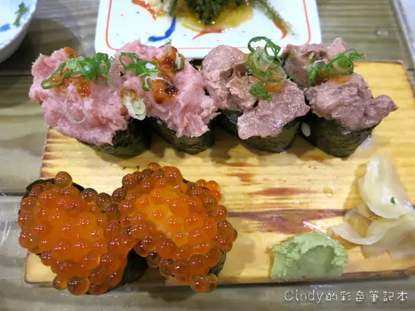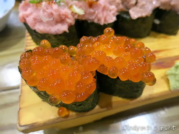 鮪魚蔥花 70元(二貫) 鱈魚肝 70元(二貫) 鮭魚卵 120元(二貫)