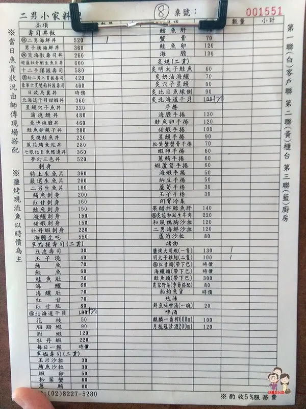等待的同時,可以先跟小姐拿一下點菜單,