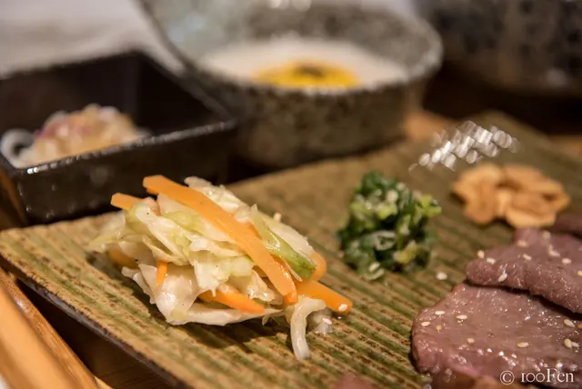 另外兩樣小菜:醃洋蔥及泡菜,也都相當開胃,尤其我很喜歡這個泡菜,夠味且非常下飯,搭配牛舌也是另一種吃法