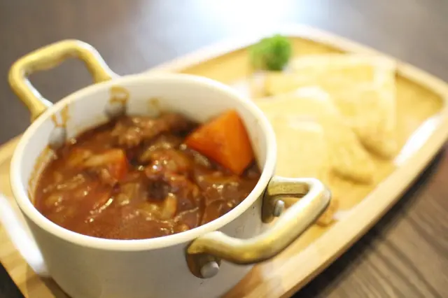 牛肉不意外燉煮到軟爛,紅蘿蔔!一定要吃紅蘿蔔!綿密鬆軟浸漬滿滿燉汁,拿薄餅沾一些許燉汁吃得到麵香,這道開胃菜不點可惜