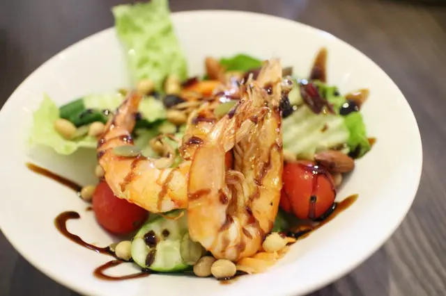 大家比較看看沙拉有兩尾蝦耶,還幫你去好背殼貼心啊!