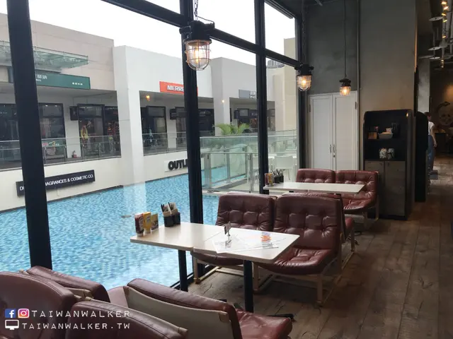 My first time to Linkou and this outlet. We sat besides the pool and ordered a burger and soufflé pancakes.