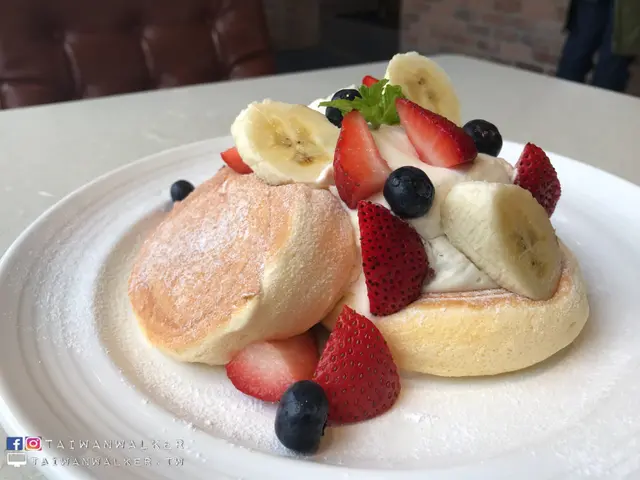 第一次吃他們的舒芙蕾鬆餅,非常鬆軟!建議不要用刀,用叉子撥開來吃,綿密的質感加上加了楓糖的鮮奶油,難怪會這麼受歡迎。水果有草莓跟香蕉,草莓品質很不錯呢!