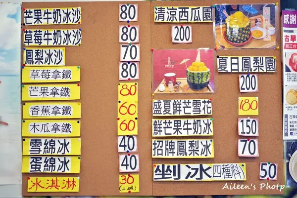 除了鳳梨冰和西瓜冰之外,他們家還有提供其他的冰品,菜單就在牆上給客人參考。