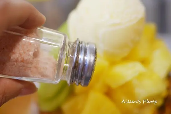而鳳梨加上玫瑰鹽可以讓讓甜味更明顯,鹹甜的味道會讓鳳梨變的更美味。