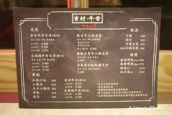「吉村.牛舌」的菜單主要是以牛舌為主,提供的牛舌是澳洲牛,牛小排則是美國牛。