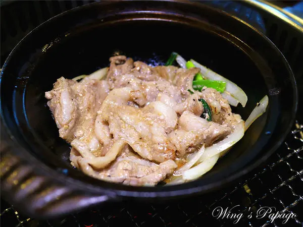 店內的黑毛豚五花是以鐵鍋直接放在烤網上烤,