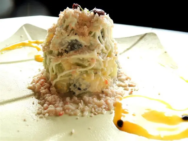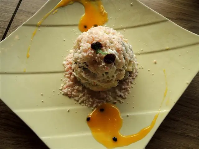 外層灑上蟹肉屑以及美奶滋 葡萄乾調味
