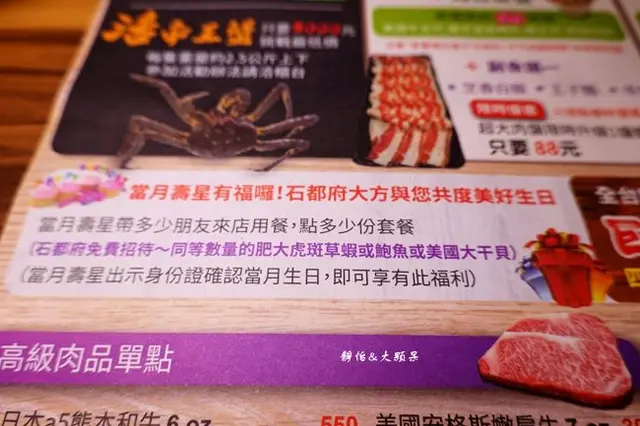 當月份有家人或朋友生日一定要帶來【石都府石頭火鍋達人】新莊店用餐,當月壽星送虎斑草蝦、鮑魚、大干貝三選一,而且一同來用餐的朋友也可以同享,點幾份套餐就送幾份喔!