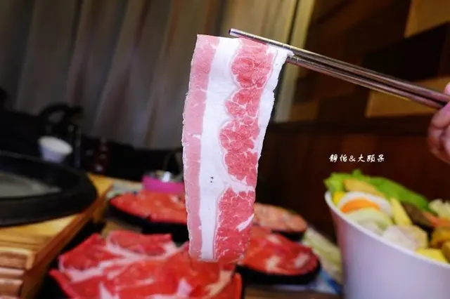 肉品有安格斯黑牛五花、安格斯霜降牛、安格斯嫩肩牛、盤克夏黑豬梅花、松阪豬及櫻桃鴨胸可選擇,我們點了:安格斯霜降牛及豬梅花