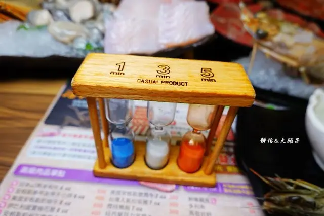 隨海鮮還附上了計時沙漏,上面分別為一分、三分及五分,整個太貼心,這樣就不怕海鮮煮不熟或過老,服務人員也會告知每一種海鮮需要的時間