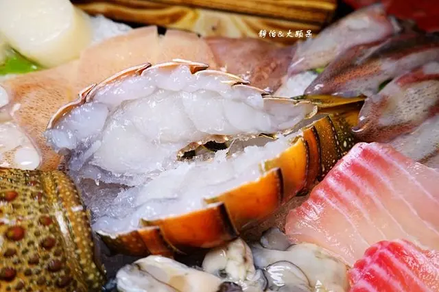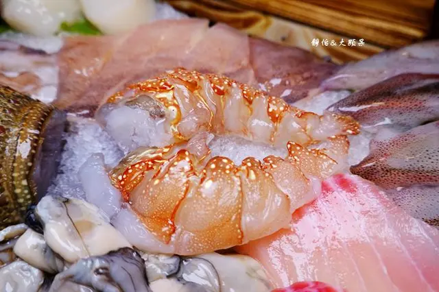 看看這海鮮真是太誘人了,整個擺滿滿滿,除了龍蝦外,還有馬祖岩蚵、魷魚、鯛魚、多利魚、澎湖小卷及大干貝等