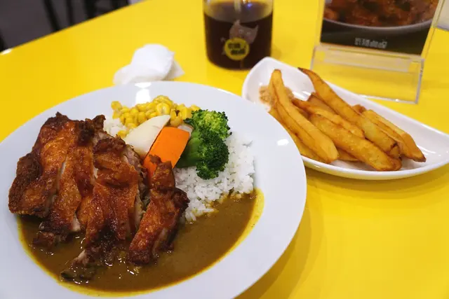 香酥炸雞腿排印度咖哩(150元)、地瓜薯條(套餐加購30元)