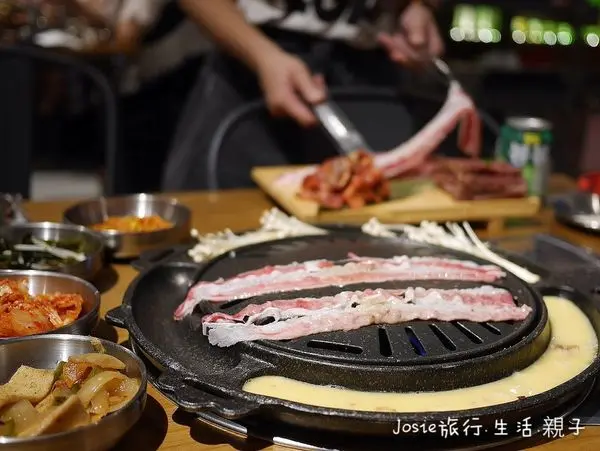 看著炙熱烤盤上厚切豬五花的油脂咕滋咕滋作響,實在令人食指大動