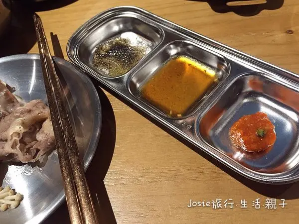 不同的肉品沾著不同風味的韓式醬料,也呈現著不同的口感