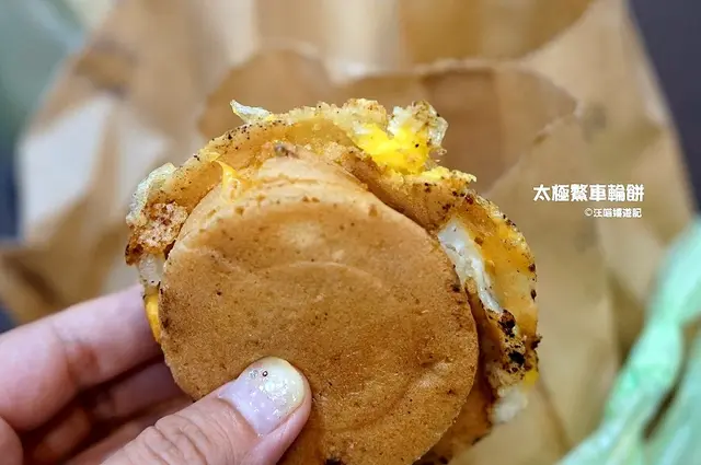 車輪餅中算是蠻特別的口味,一般都只有起司,這個還加了蛋,