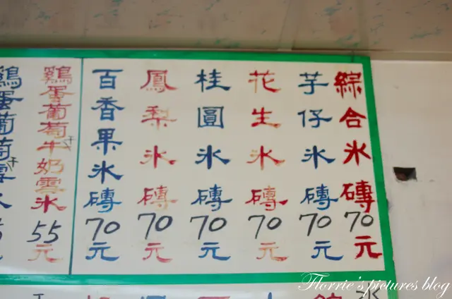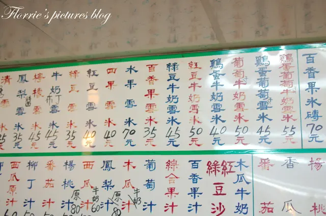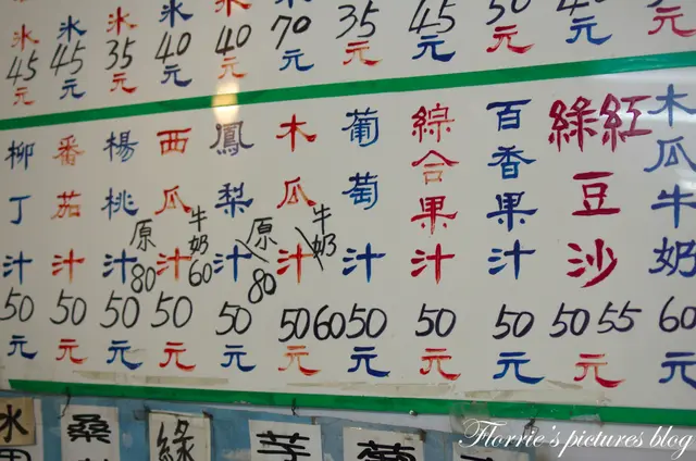 該店販售的品項頗多,除了冰磚外,還有果汁、雪冰與水果拼盤,光是雪冰的口味就多到讓人難已選擇且價格也不會很貴,只是我在想若是要把該店的品項全部吃完,可能夏天時要每天造訪才有可能吃完一輪。
