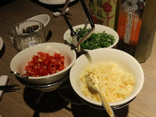 桌上已經擺上蒜末,辣椒,蔥花,喜歡重口味的朋友可以自行添加