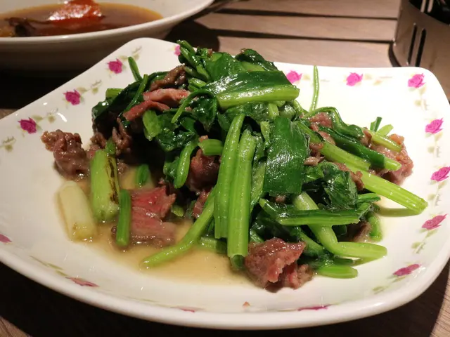 牛肉片切得滿厚實的,搭配上爽脆的菠菜,大火拌炒個幾下後