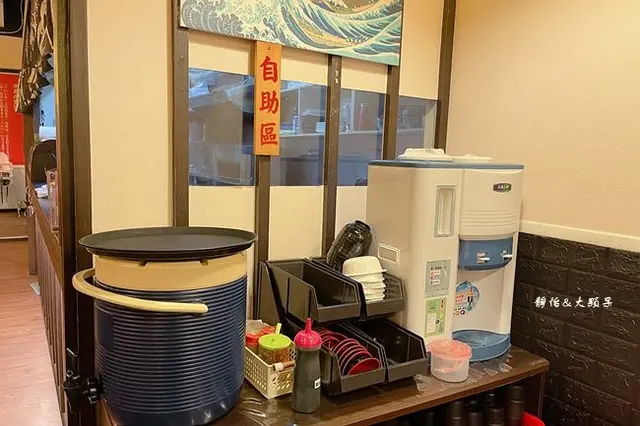 自助式的茶水、醬料及餐具區,有提供兒童餐具,免服務費通通自己來